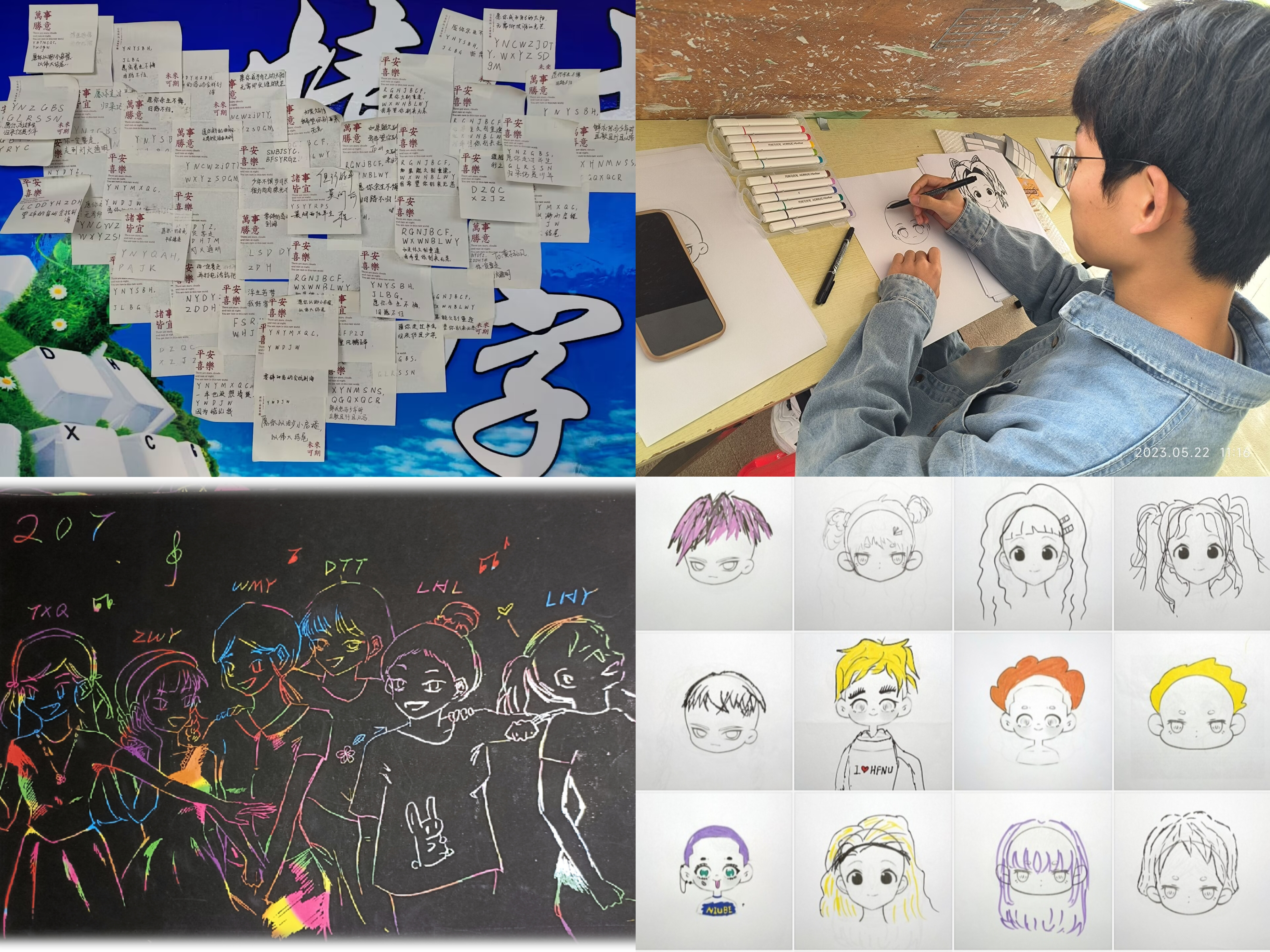 在“情由键蕴,字间含情”活动中,学生利用键盘这一计算机常用工具编辑温暖话语,传递爱与关怀,引导学生以积极乐观的心态面对生活。“笔映成趣,追光绘心”以五彩斑斓的画笔、青春独特的视角展现每个人独特的一面,用艺术表现形式进一步加强宿舍关系,通过沉浸式绘画诠释心理健康状态,普及心理健康知识。在日常学习生活中,同学们或许会产生迷茫、自我怀疑,或许会在人际交往中遇到困难和问题,“敞开心扉,述说心想”引导学生重视心理健康,以“吐槽大会”的形式疏解压力。“码出乐趣,绘出自我”将心理健康与专业特色相结合,学生根据“趣味代码”猜出对应的诗句,感受代码和中华民族传统文化碰撞产生的奇妙韵味。在计算机行业存在发量焦虑的调侃下,为Q版程序员设计不同发型,在有趣的漫画中缓解学业压力,打破大众对程序员的刻板印象。