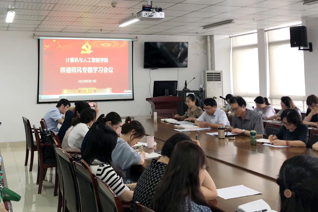 本网讯 6月14日下午,为深入学习贯彻习近平新时代中国特色社会主义思想和党的二十大精神,落实立德树人根本任务,加强和改进学院师德师风建设,澳门十大网投平台排行在行知楼1302室召开师德师风专题学习暨研讨活动,学院党政班子成员、全体教师参会,会议由党委书记王祥主持。