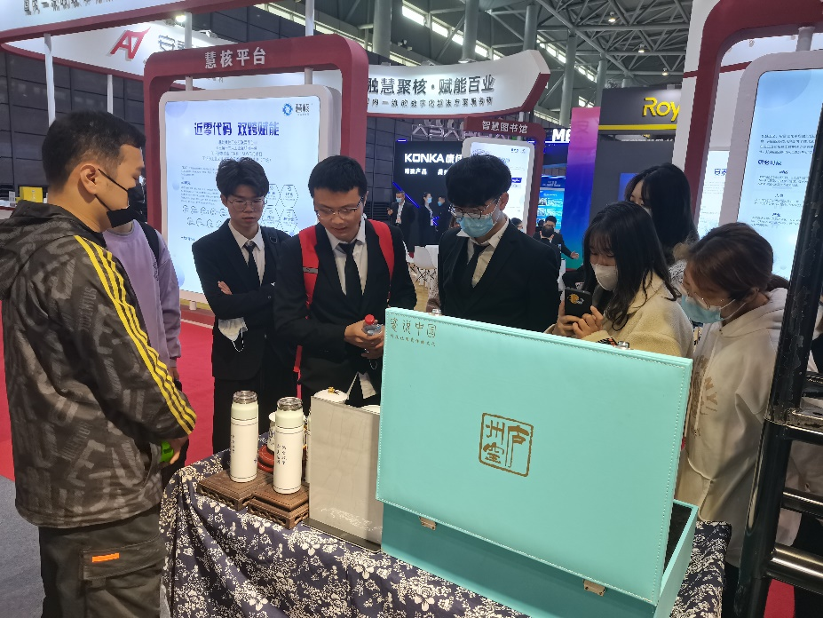 在这里,同学们兴致勃勃地参观了人工智能、量子通信、新能源汽车、航空航天、环境保护、生物科技、乡村振兴等展区,一项项新奇的技术与应用引得同学们流连忘返、啧啧称奇。