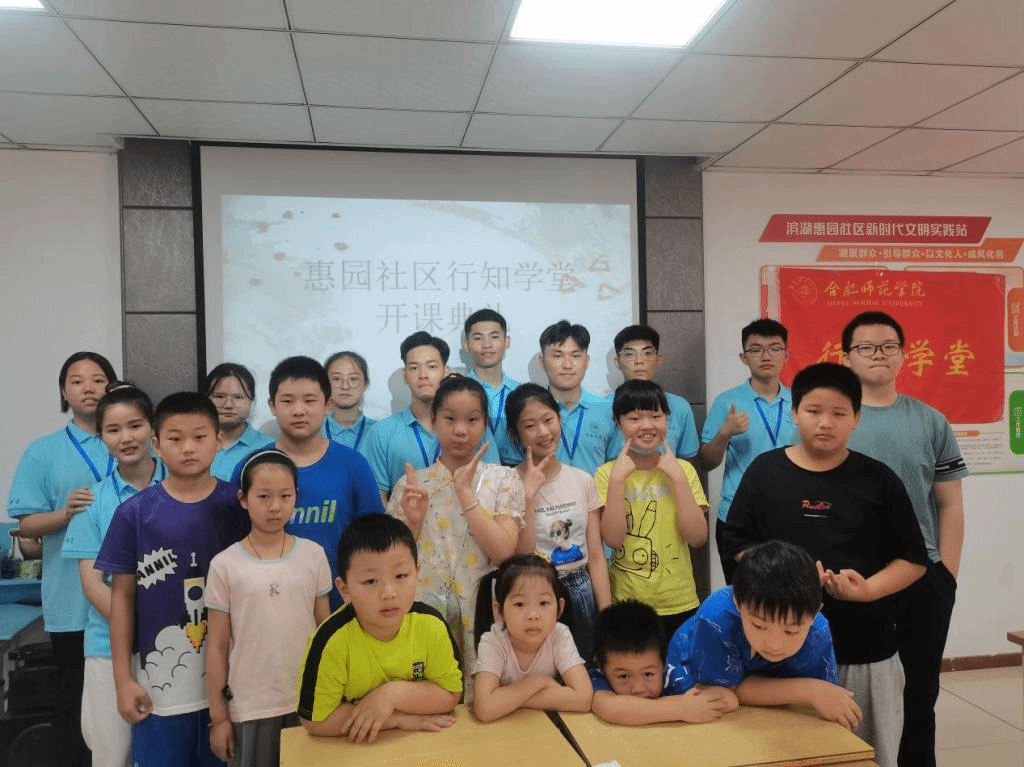 7月12日,合肥市包河区烟墩街道滨湖惠园社区行知学堂顺利举行开课典礼,社区负责老师王照镜、社区微创投负责人江莉、以及来自合肥师范学院计算机学院、数学与统计学院、经济与管理学院、教师教育学院共计9名小先生、12名小学员共同参与了开课典礼。