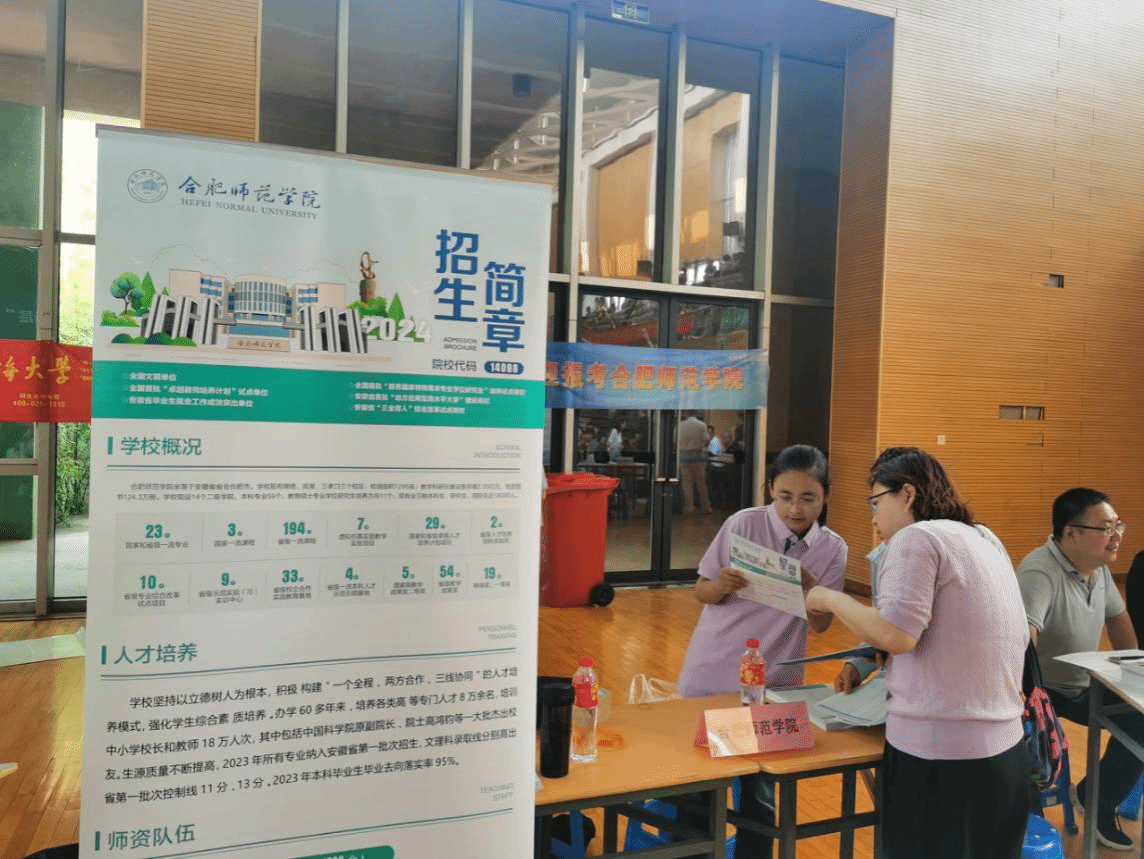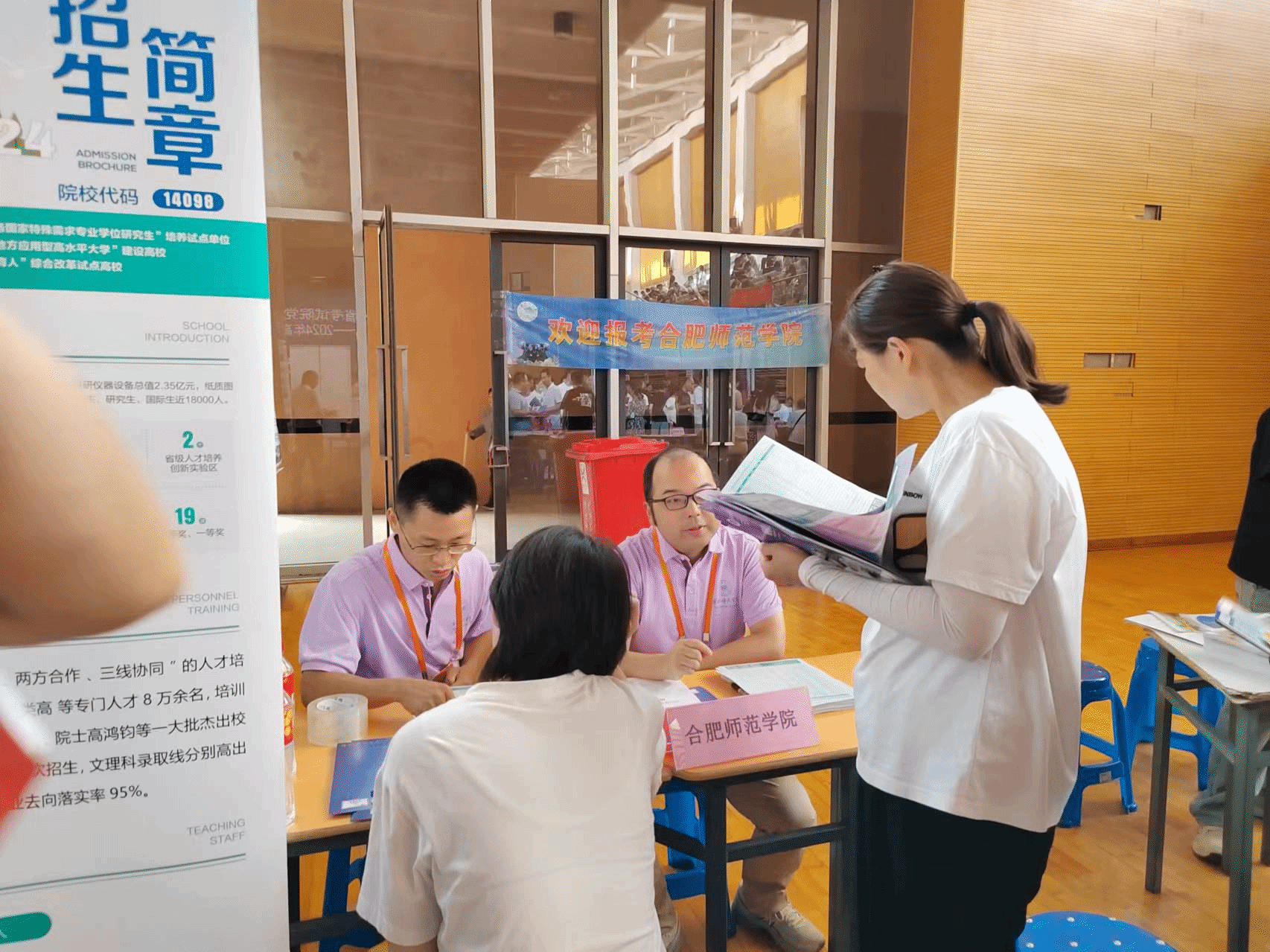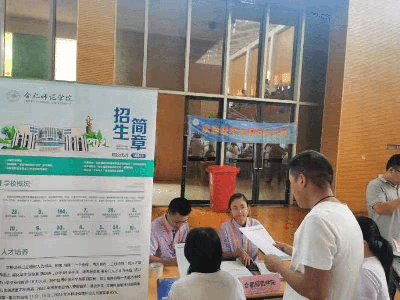 活动现场咨询考生及家长络绎不绝,招生队伍介绍了学校及学院专业设置、历年录取分数和排位、师资队伍、就业、深造等多方面情况,对考生及家长提出的疑问进行了详细解答。同时,为了方便考生及家长更加深入了解我校情况,宣传队伍积极推广招生公众号等线上平台资源,形成线下线上双合力宣传,达到了预期宣传效果。通过这次活动,蚌埠地区的考生及家长对我校有了更深入的了解,许多学生表现出了浓厚的兴趣。