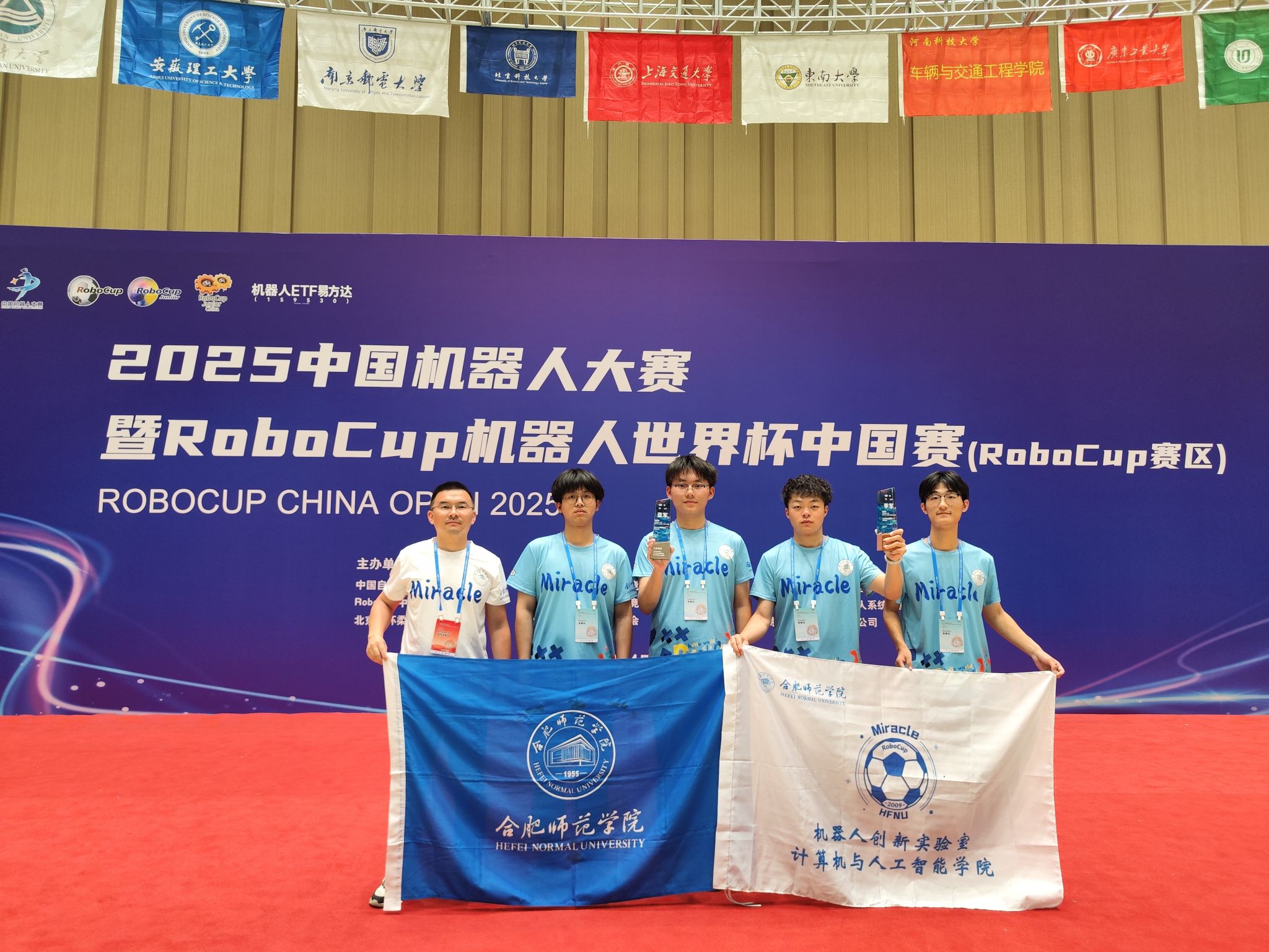 2025年5月2日至4日,2025中国机器人大赛暨RoboCup机器人世界杯中国赛在北京雁栖湖国际会展中心圆满落幕。作为国内机器人领域最具影响力的赛事之一,本届大赛由中国自动化学会、RoboCup中国委员会及北京市怀柔区人民政府联合主办,吸引了全国73所高校的233支参赛队伍同台竞技,成为展示机器人技术创新与学术成果的重要平台。经过激烈角逐,澳门十大网投平台排行机器人创新实验室Miracle团队在RoboCup仿真2D与仿真3D项目中分别斩获亚军与季军,双双登上领奖台。