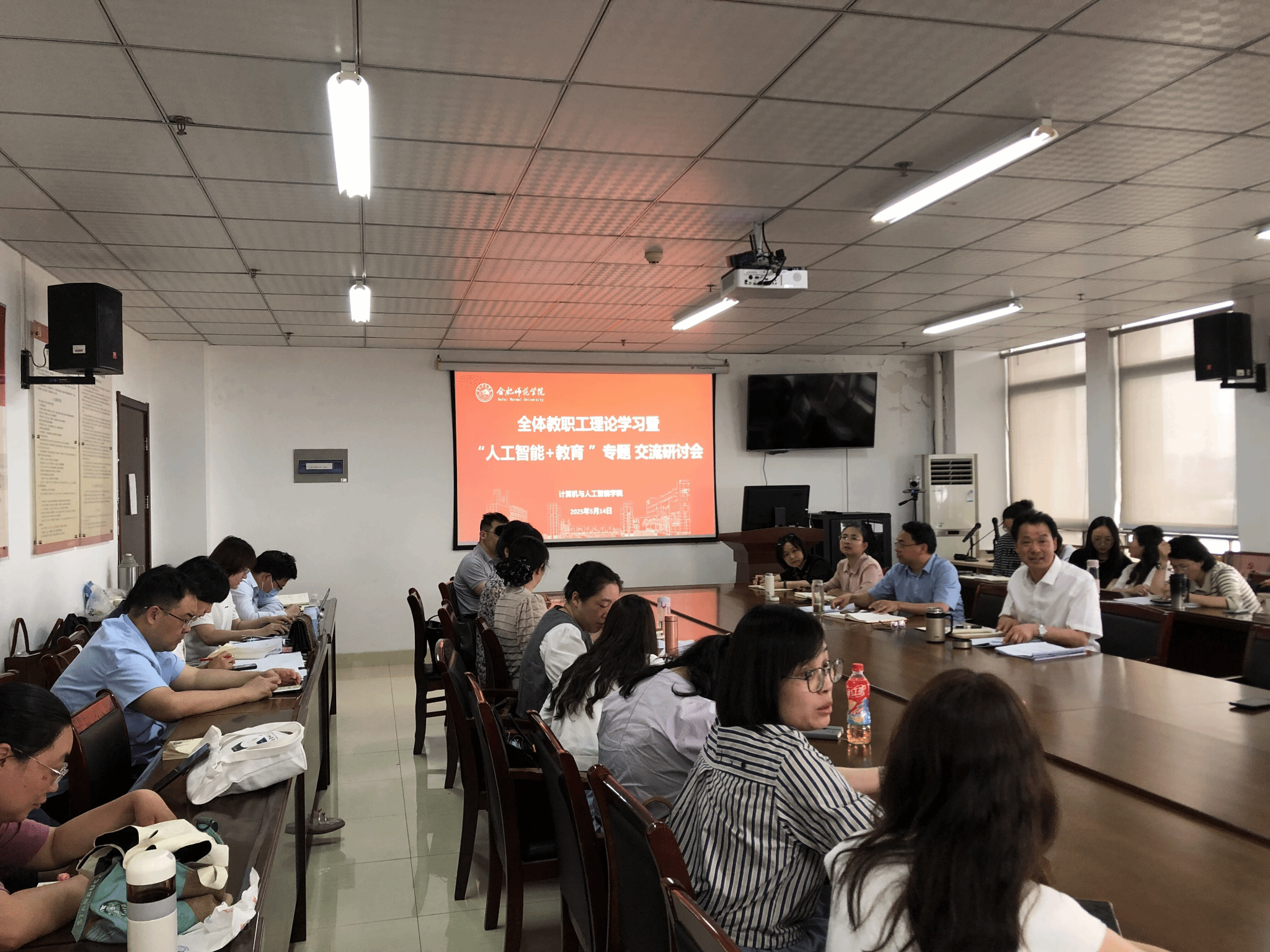 最后,王祥对本次研讨会进行了总结,并对全院教职工提出三点要求:一是要加强学习,不断提升自身的人工智能素养和教育教学能力,紧跟教育技术发展前沿;二是要积极实践,将人工智能技术融入到日常教学中,探索适合学院特色的“人工智能+教育”教学模式和方法;三是要加强合作,凝聚全院力量,形成合力,共同推进学院“人工智能+教育”事业的发展。