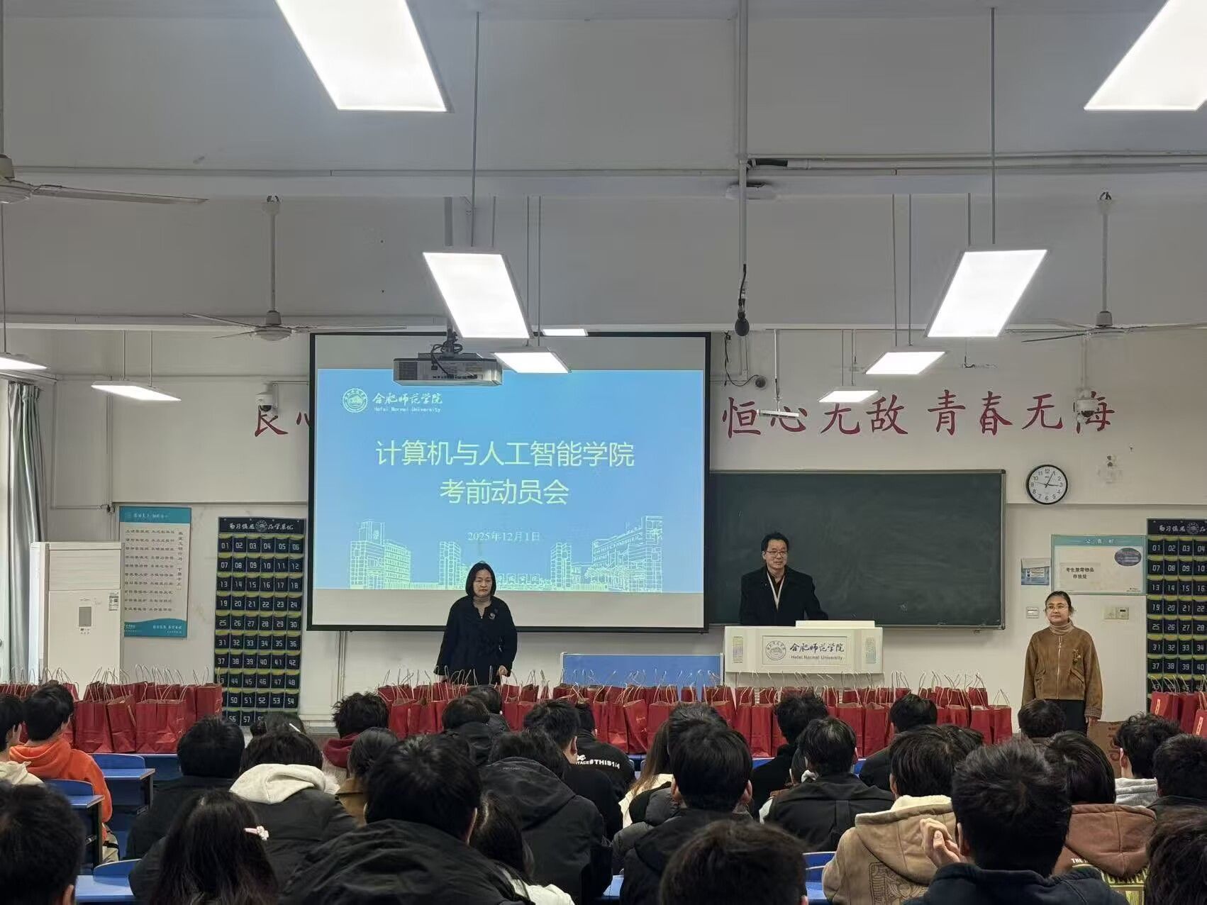 2025年12月1日下午,澳门十大网投平台排行在逸夫楼A206举办了2026年全国硕士研究生招生考试考前动员会。学院党委书记王祥、副书记杨萍、副院长刘路路、毕业班辅导员及考研学子参加了此次动员会。