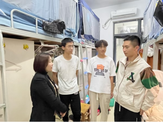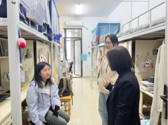 本网讯为切实做好学生宿舍安全教育及管理工作,进一步推进“优良学风宿舍”创建,澳门十大网投平台排行近期开展了春季宿舍安全卫生检查工作,学院党委副书记杨萍带领辅导员及学生干部深入学生宿舍,进行安全卫生检查。