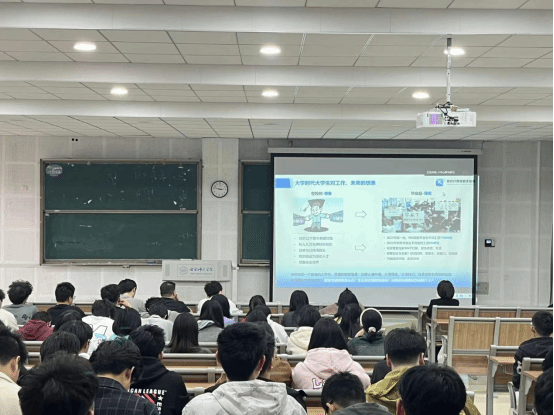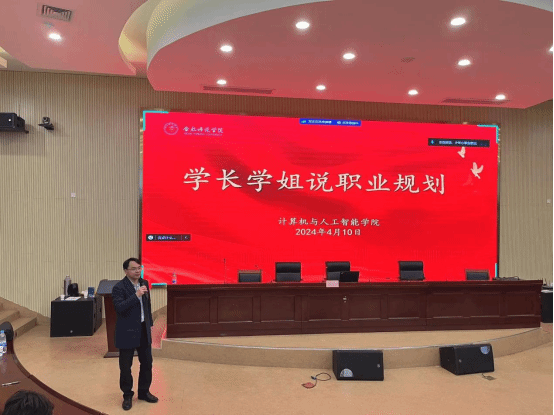 范文斌学长首先对国内目前经济情况及就业形势进行分析,从考公、考研、创业、民企四个未来就业方向入手向学生分享了各种就业途径的利弊关系,重点讲解了计算机行业6个企业岗位与分工以及岗位所需要的知识及技能,更好地帮助学生理解计算机行业的岗位要求。最后,范文斌学长表示,在职业规划过程中,大学生们首先要深入了解自己的兴趣、特长和价值观,明确自己的职业目标和定位。只有对自己有清晰的认识,才能做出适合自己的职业选择。他指出,随着科技的飞速发展和产业的不断升级,未来的职业市场将更加多元化和复杂化。因此,大学生们需要不断学习新知识、掌握新技能,提升自己的综合素质和竞争力。