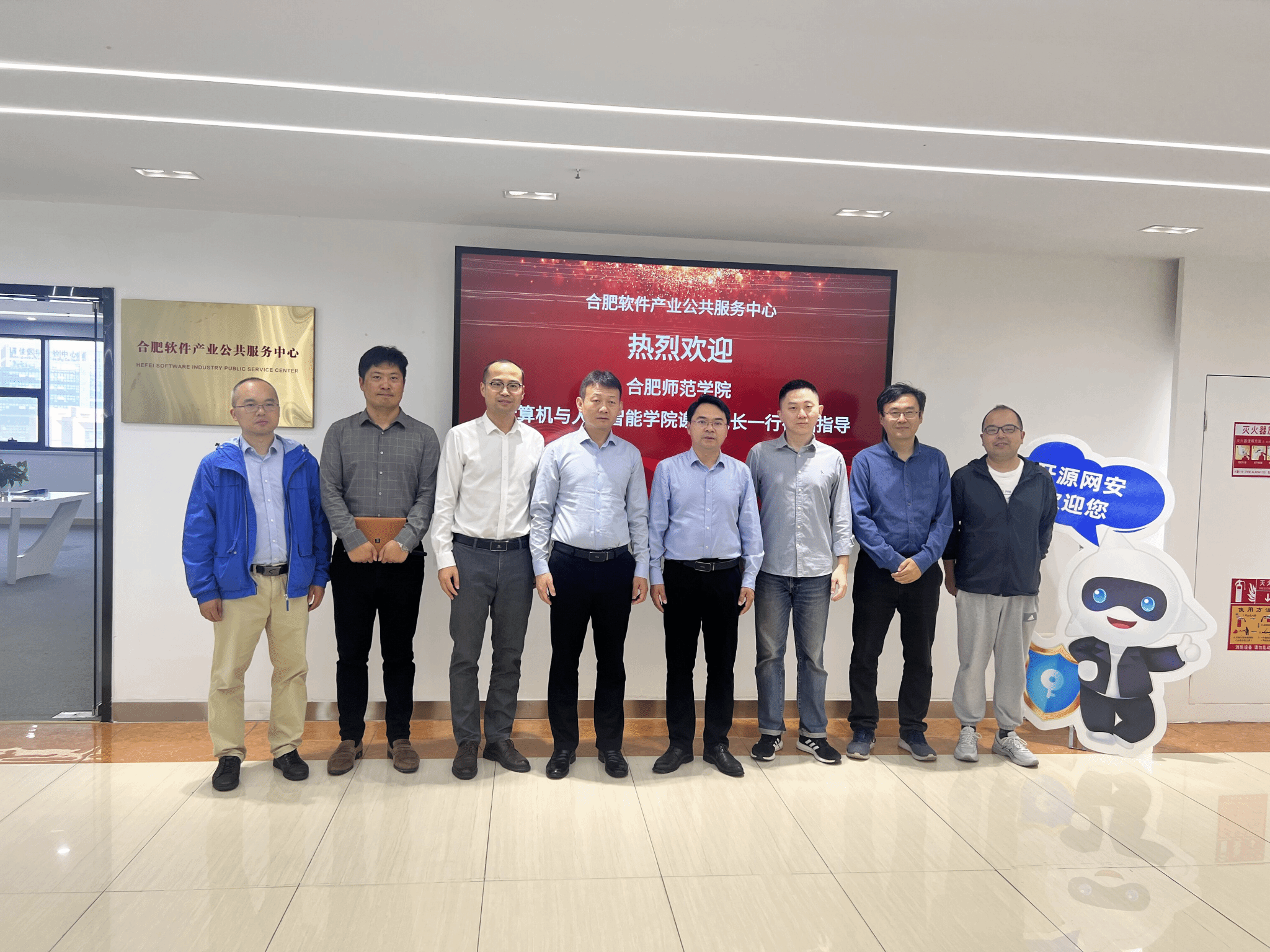 在合肥高创股份有限公司副总经理陪同下,谢飞一行对合肥市软件产业公共服务中心开展了调研交流,合肥软件产业公共服务中心徐飞主任从支撑区域软件产业高质量发展角度介绍了中心数据安全能力评估、源代码安全检测、软件人才培训等内容,谢飞针对软件安全、内容安全、密码安全以及软件供应链安全相关技术实践进行了技术交流。双方就专业发展、创新创业、学生实习就业、学校课题进基地等校企合作形式进行广泛交流,并在人才培养方案修订、专业教材编写、引进企业导师、实习实践基地建设等方面达成合作意向。